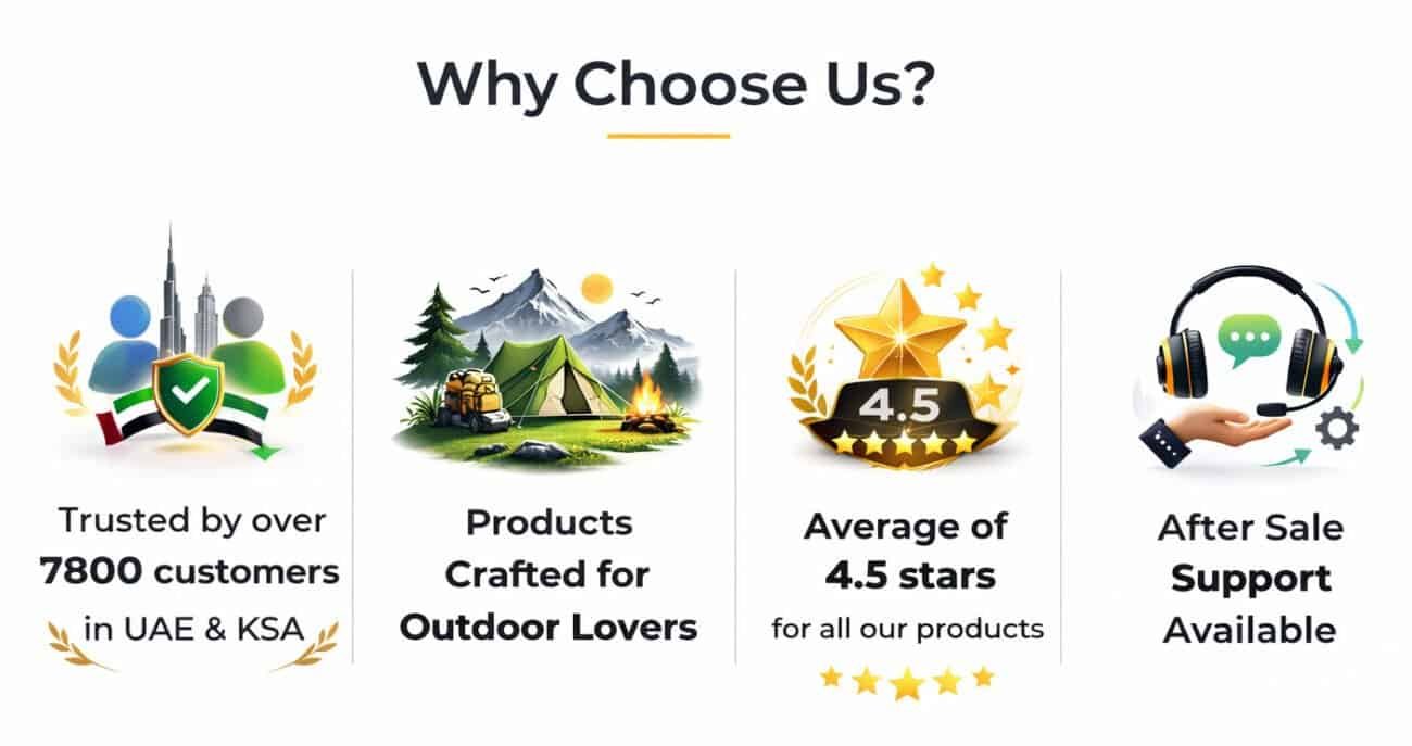 Yes, our outdoor products in Dubai, UAE, are designed to be safe and comfortable for all ages, including kids. Whether it’s camping equipment or swimming equipment, our outdoor essentials support family-friendly outdoor adventures.